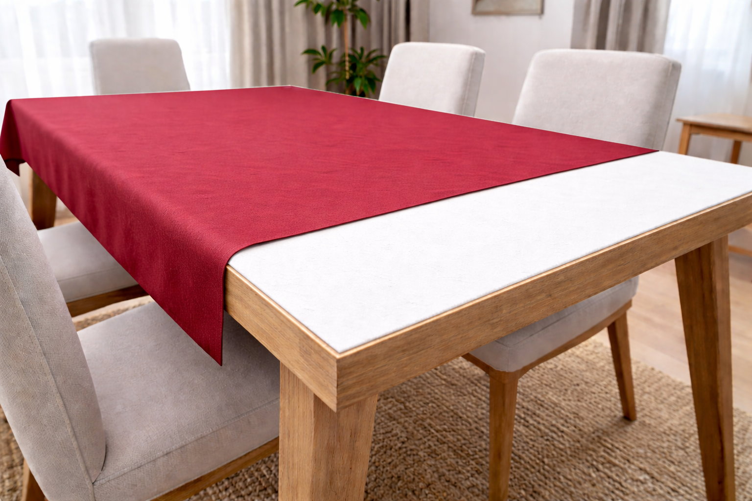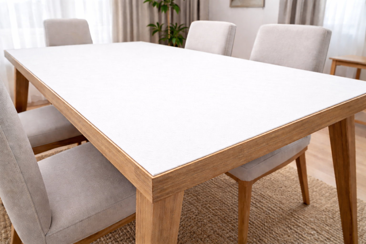 Die robuste Materialkombination schützt Ihre Tischoberfläche zuverlässig vor Kratzern, Stößen und Druckstellen. Ideal für hochwertige Holz-, Lack- oder Echtholztische.